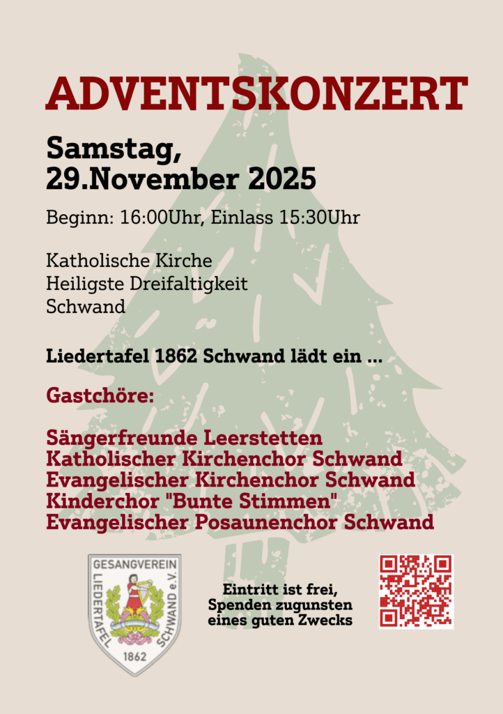 Am Samstag, 29. November 2025, lädt die Liedertafel 1862 Schwand herzlich zum traditionellen Adventskonzert ein.