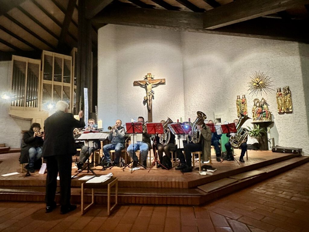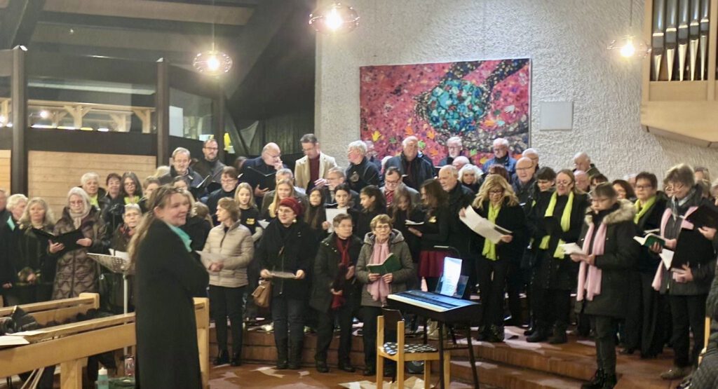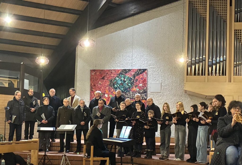 Den musikalischen Auftakt gestaltete der evangelische Posaunenchor Schwand unter der Leitung von Werner Häckler. Mit „Wie soll ich dich empfangen“ setzten die Bläser ein feierliches Signal für den Abend. Anschließend präsentierten die Sängerfreunde Leerstetten unter Tim Wisura ihr Programm, darunter traditionelle Lieder und das italienische Wiegenlied „Dormi, dormi, bel bambin“. Die Liedertafel Schwand setzte mit alpenländischen und modernen Adventsstücken wie dem „Sterzinger Weihnachtjodler“ oder  „Whisper ! Whisper!“ von Jay Althouse, eigene Akzente, bevor der Jugendchor „Bunte Stimmen“ mit frischen, energiegeladenen Titeln wie „Joy to the world“ und „Angels Carol“ übernahm. Die Liedertafel erinnerte außerdem an ihr verstorbenes Mitglied Karl Pfann. Der stellv. Vorsitzende der Liedertafel Robert Fischer würdigte ihn als treuen Sänger, bevor „Harre meine Seele“ erklang – ein emotionaler Moment im Programm. Der katholische Kirchenchor Schwand-Rednitzhembach, geleitet von Frau Ludwig aus Schwanstetten und Frau Wittmann aus Rednitzhembach, sorgte mit ruhigen, besinnlichen Beiträgen, wie „Wieder naht der heil`ge Stern“ von Lorenz Maierhofer, für eine atmosphärische Vertiefung des Konzerts. Den finalen Chorblock gestaltete der evangelische Kirchenchor Schwand and Friends from R and R – mit stimmungsvollen Adventsliedern wie „Mit den Hirten will ich gehen“. Zwischen den Chorblöcken wurden mehrere besinnliche Texte vorgetragen. Die Lesungen übernahmen Astrid Scharpff und Armgard Scholz, die mit ihren Beiträgen für ruhige Momente und inhaltliche Tiefe sorgten. Zum Abschluss sangen alle Chöre gemeinsam mit dem Publikum das bekannte „Tochter Zion“ und ließen das Konzert stimmungsvoll ausklingen.