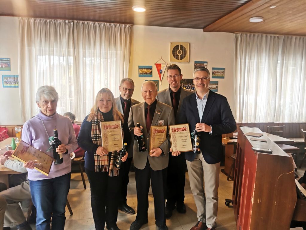Ebenso wurde den Funktionsträgern des Vereins gedankt, die mit ihrem Engagement im Hintergrund das Vereinsleben maßgeblich mittragen. Im Rahmen der Feier ehrte die Liedertafel mehrere Fördermitglieder für ihre langjährige Treue. Für zehn Jahre fördernde Mitgliedschaft wurden Regina Freiwald und Markus Pfann ausgezeichnet, für 25 Jahre Richard Seidler, Wilhelm Krieger und Horst Seidler. Eine besondere Ehrung erhielt Brigitte Geiß für 40 Jahre fördernde Mitgliedschaft. Alle Geehrten erhielten eine Urkunde als Zeichen der Anerkennung.